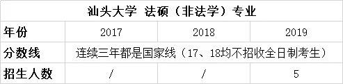 录取情况:2019年汕头大学全日制法律(非法学)实际录取8人,最高373分,最低358分,法硕法学实际录取10人,最高366分,最低340分;非全日制法硕非法学实际录取26人,最低分321分,最高分382分;法律(法学)实际录取9人,最低分320分,最高分363分。