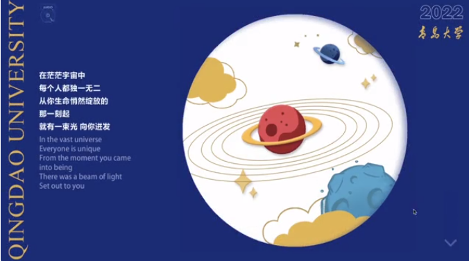 在数字媒介发展的时代,青岛大学不仅为学子们设计了纸质版录取通知书,而且以创新为宗旨设计了数字化的录取通知书,祝贺学子们金榜题名。数字版录取通知书是学校首次尝试设计制作,为了呈现出更佳的视觉效果与用户体验感受,设计过程中历经了多次迭代。
