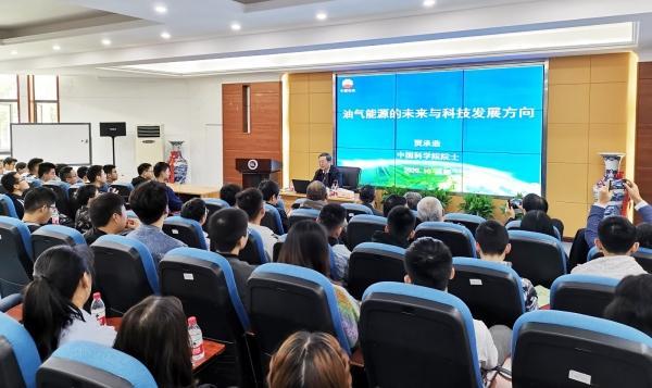 聘任仪式前,贾承造院士做客"名师讲堂",作了题为《油气能源的未来与科技发展方向》的报告分享,并与学院教师围绕人才培养、科学研究、产业合作等方面进行了座谈交流。