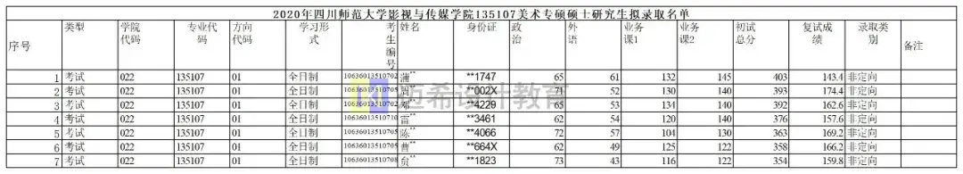 2020年影视与传媒学院135107美术专硕录取7人,一志愿初试最低分354,初试最高分403。