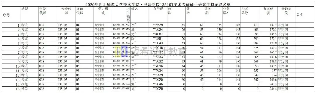 书法方向录取2人,初试分别为365分,356分。