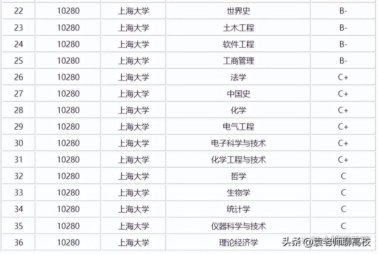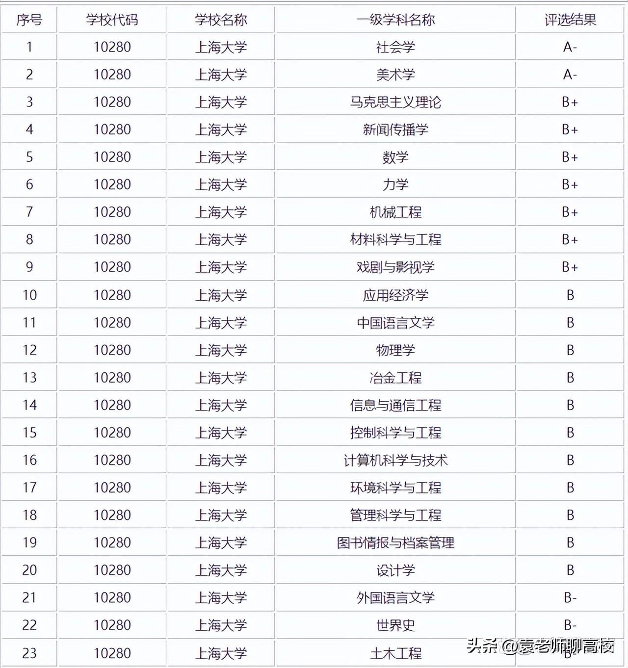 在第四轮学科评估中,上海大学有36个学科上榜,其中最强的学科是社会学和美术学,两个学科被评为A-,具体可见下图。