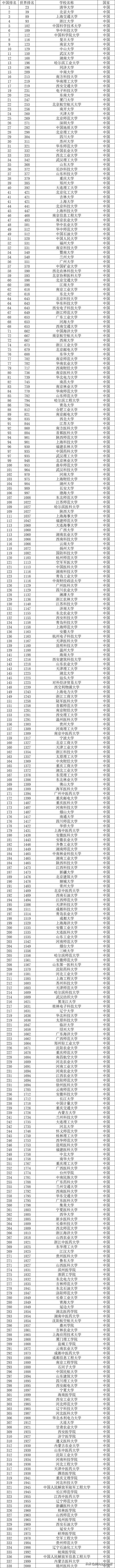 最后,上一张完整的USNews中国大学排名榜: