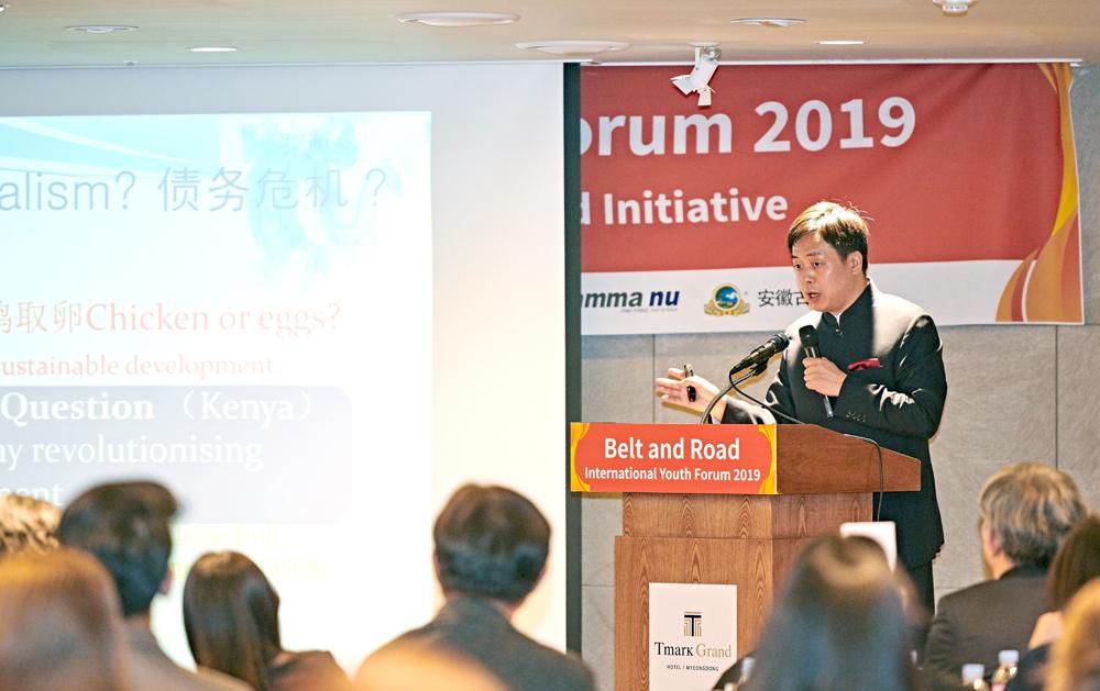图为今年2月,王义桅在韩国举办的“一带一路”国际青年论坛上发表演讲。(资料图片)