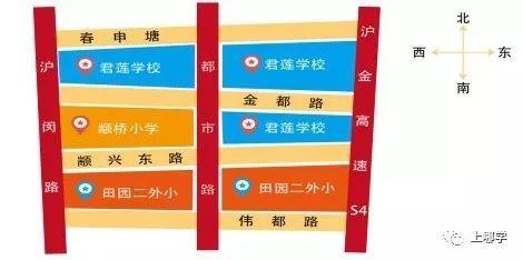 按地块划分,分别统筹入田园二外小、颛桥小学和君莲学校(如下图所示)
