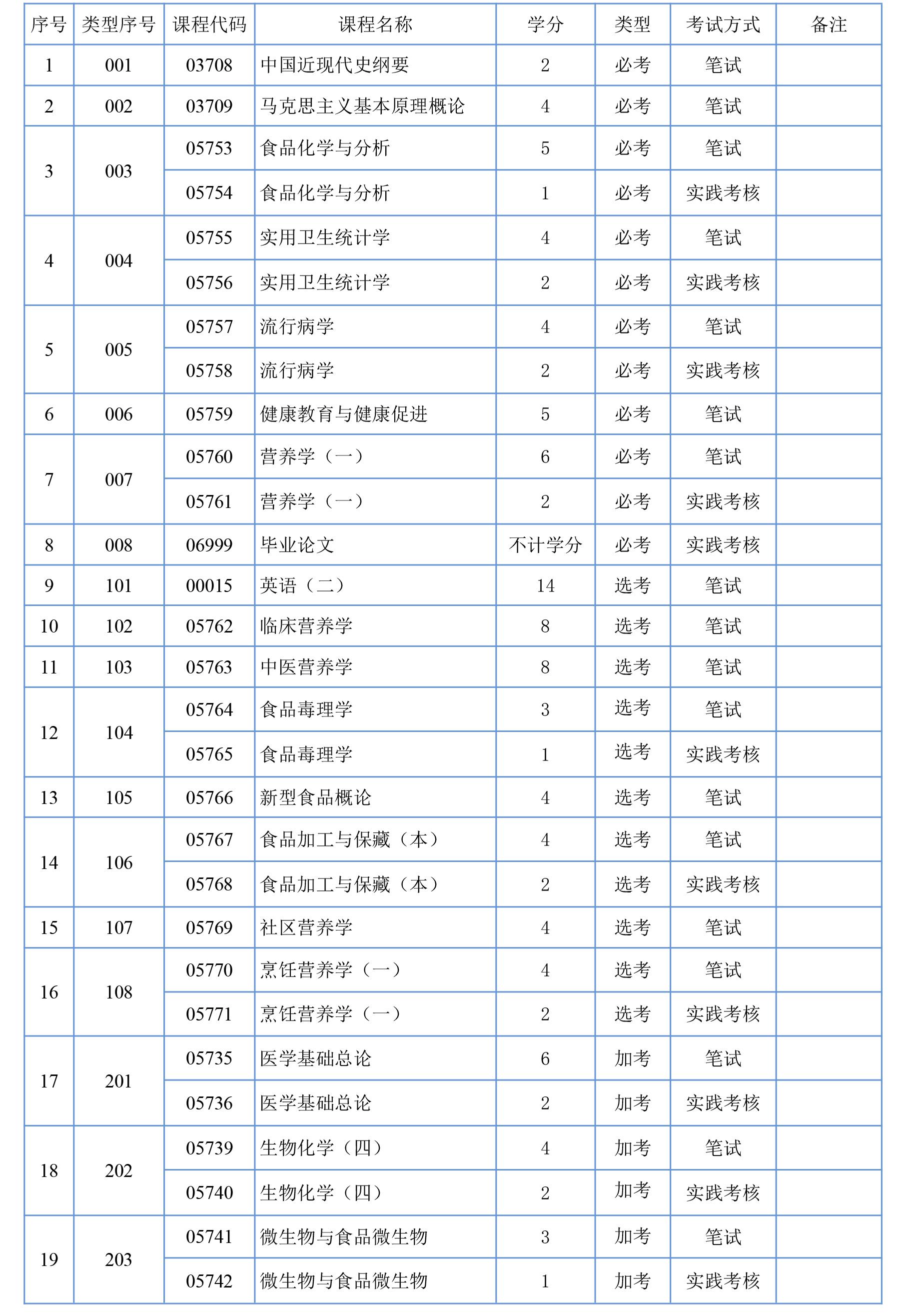 2. 凡国家承认学历的营养、食品与健康专业专科毕业生可直接报考本专业,非本专业专科(或以上)毕业生报考本专业需加考201至203三门课程。