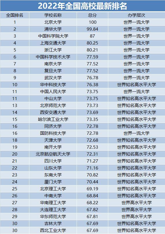 2022年全国高校排名,北大再次领先