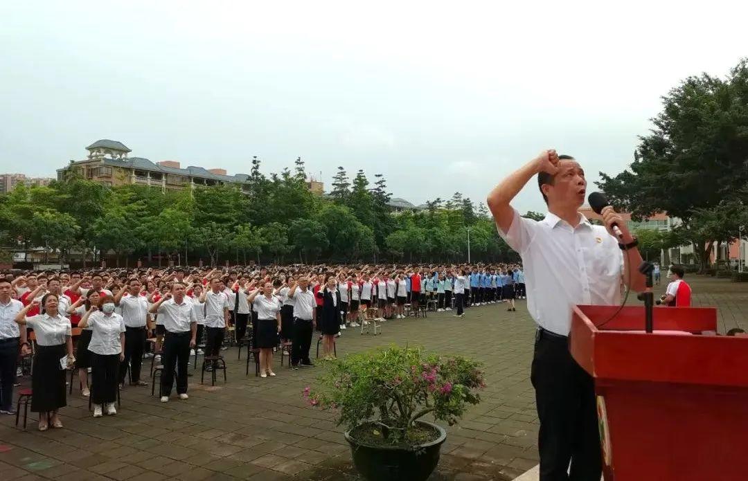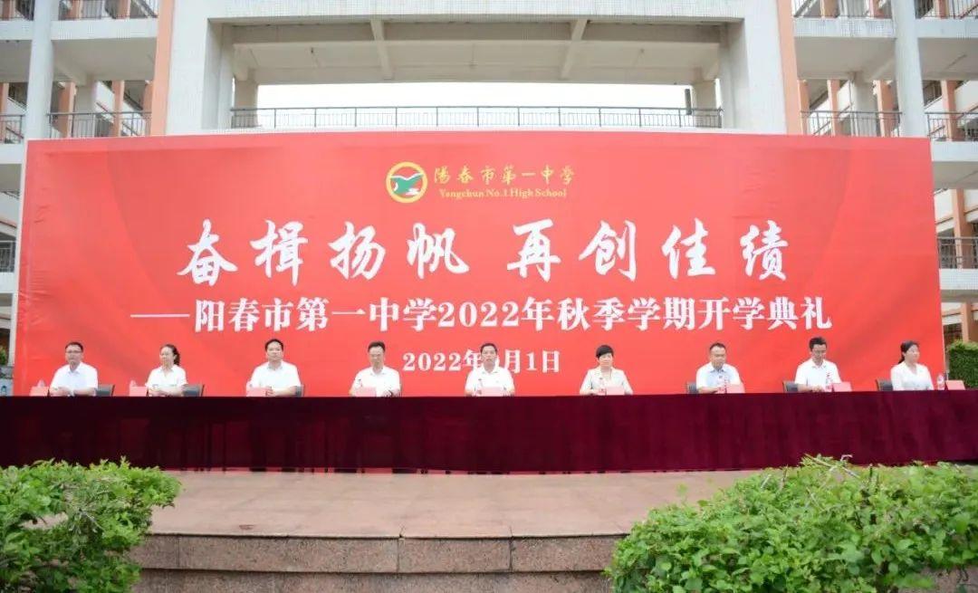 金秋九月,蓝天高远,晨光万丈,硕果飘香。9月1日上午,我校全体师生带着秋的喜悦,载着新的梦想,在学校广场隆重举行“奋楫扬帆 再创佳绩”2022年秋季学期开学典礼,满怀豪情与期待,共同迎接和庆祝新学期的开始。市委副书记、市长李谦常同志,市委常委、宣传部部长张英华同志,市府办主任曾祥儒同志,市教育局党组成员徐丕威同志,市教育局副局长、一中党委书记、校长谭元军同志,阳江市洋兴实业有限公司代表叶晰恬女士、李敏先生出席了开学典礼。开学典礼由我校副校长黄显连主持。