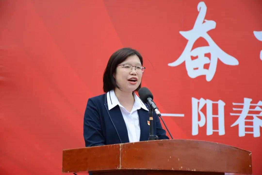 教师代表李夏萍老师首先表达了自己从阳春一中的一名学子变成了如今阳春一中的一名英语老师,见证母校许多从无到有的过程而产生的万千感慨。她表示,我们站在新学期新起点上,将面临新挑战,全体老师早已做好准备,将会并肩作战,倾尽所能,全力以赴。同时她还寄语全体学生:“阳春一中将成为你们绽放青春、实现梦想的地方,未来的每一个春秋都将见证你们的蜕变。希望所有的同学能在阳春一中,与我们一起拼搏,谱写新篇,共赴明天!”