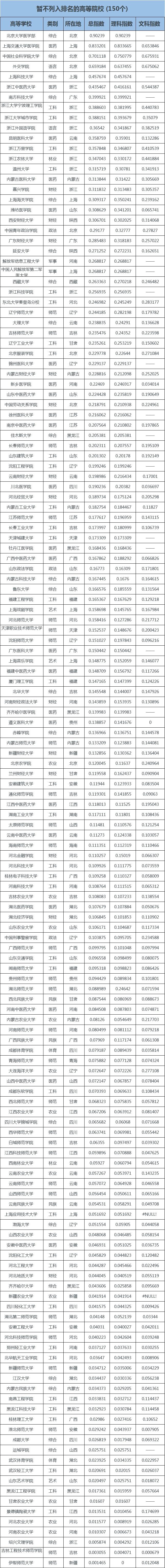 1. 暂不列入排名的院校是由于其在2013--2017年之间,参与第一批录取的年数少于3年或者招生的区域少于6个地区或者是某个大学的单列院(部)。目前有150个院校暂不列入总排名,详见后面的说明部分。