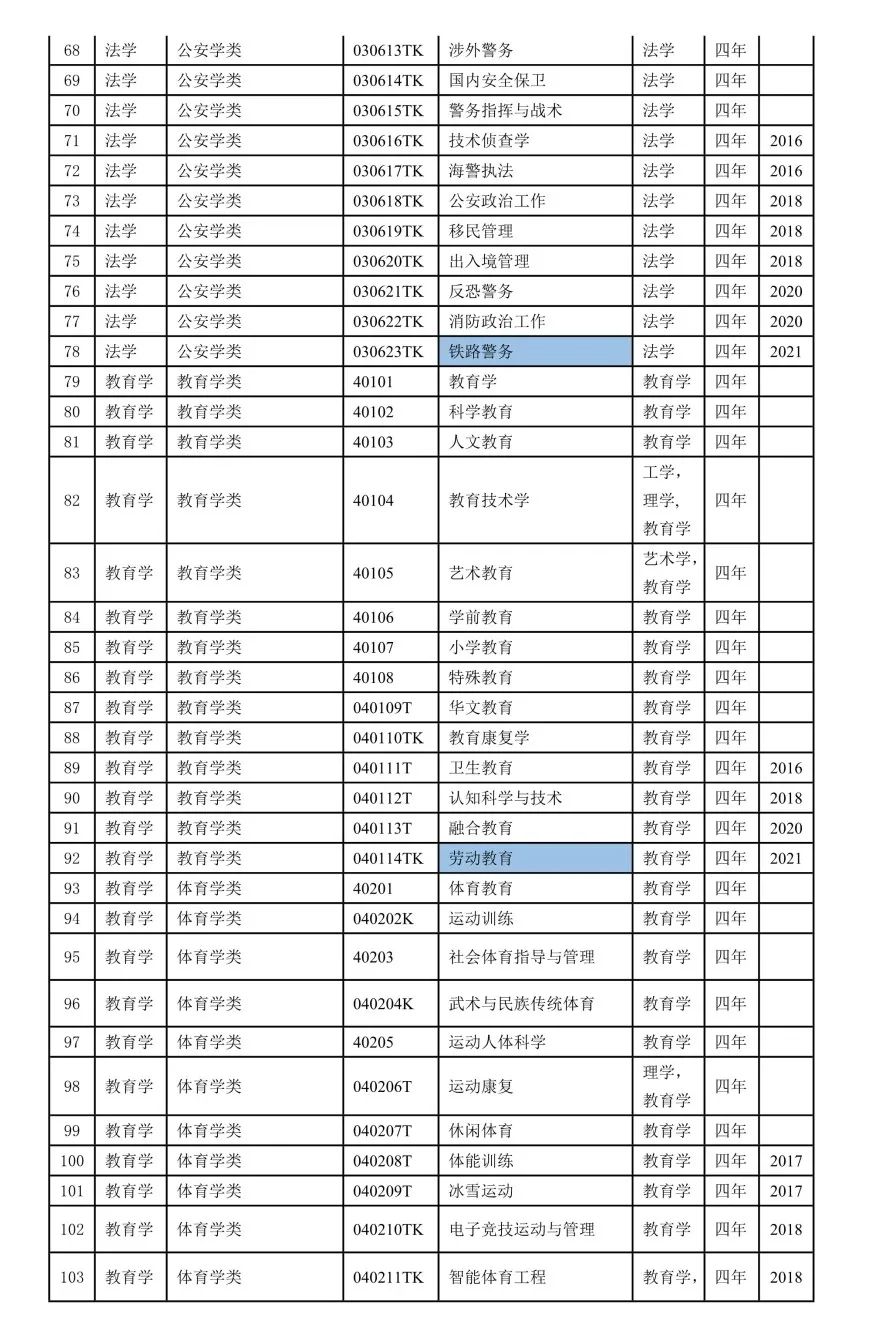 为了让考生家长更精准、全面地了解本科专业,我们在2021版本科专业目录的基础上,增补了最新新增专业,共计771个,包括专业所属门类、所属一级学科、学位授予门类、修业年限及增设年份。