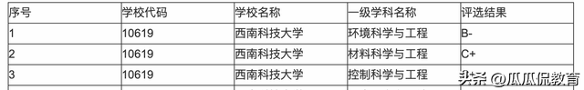 从目前的公开信息来看,西南科大公认最好的专业基本上是材料、环境、信息这三个,只是纵观全国高校,拥有这些专业的高校一抓一大把,几乎所有的985和大多数211都有,一流学科顶多是选出全国排名前10%的学校,且在第四轮学科评估中,西南科大最好学科是位列B-的环境科学与工程,想进双一流,起码得是A类吧,这个意义上,西南科大毫无优势可言。