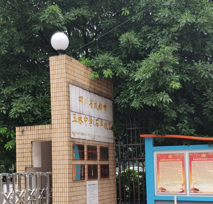 校园大门的原来的学校名字“玉林中学(石羊校区)”仍然保留:
