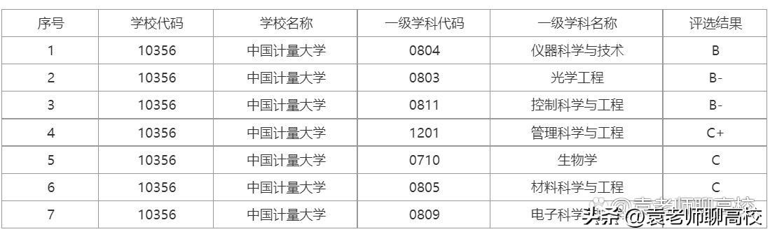 在第四轮学科评估中,中国计量大学有7个学科上榜,其中最抢的学科是仪器科学与技术,被评为B,光学工程和控制科学与工程等两个学科被评为B-,具体可见下图。