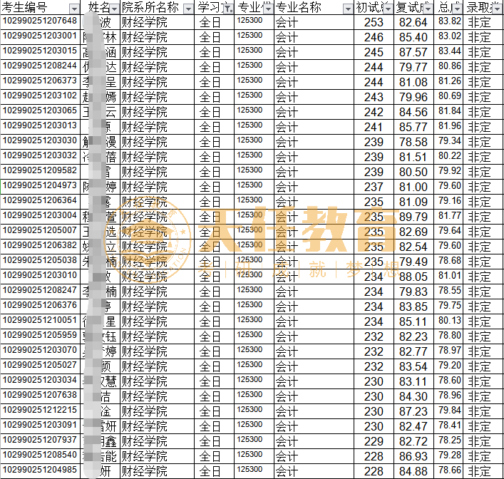 2020年,会计专硕录取55人,复试分数线217分。其他信息院校未公开。