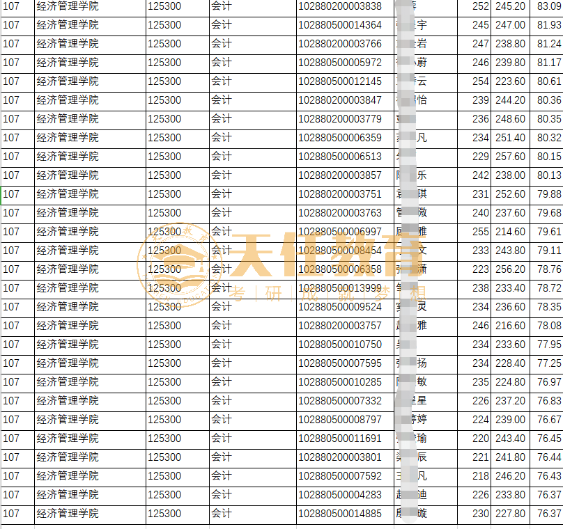 南京财经大学全日制招生计划是非常稳定的,这两年基本上每年都是70人,没什么变化。2020年,南京财经会计硕士录取70人,复试分数线220分,目标分数建议230+。
