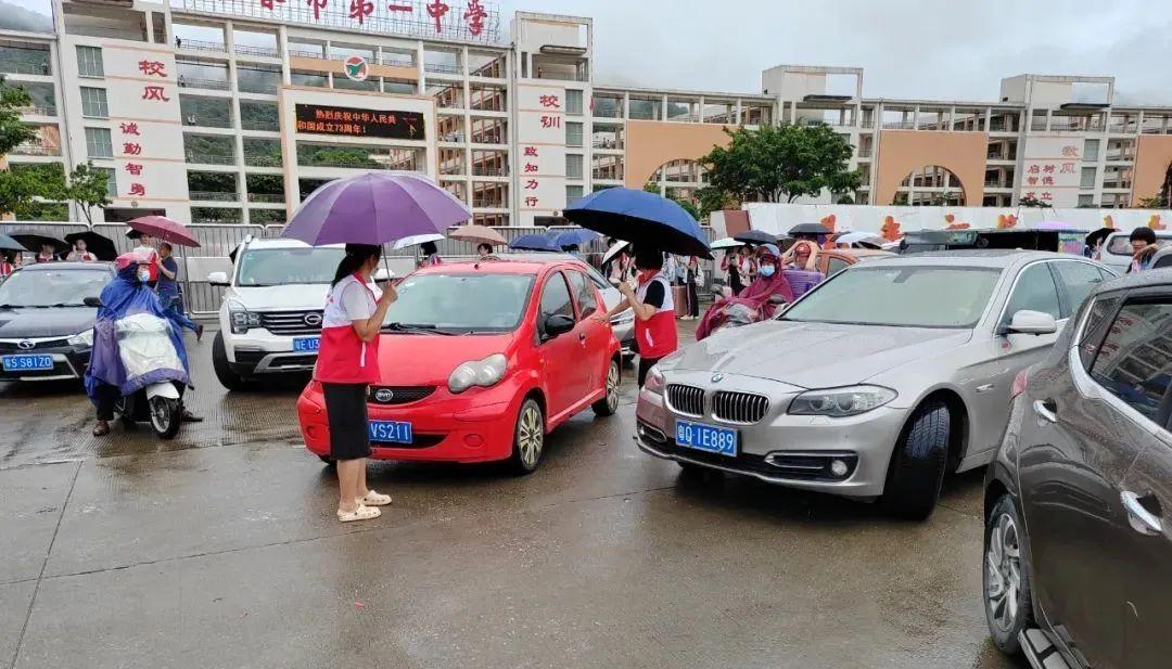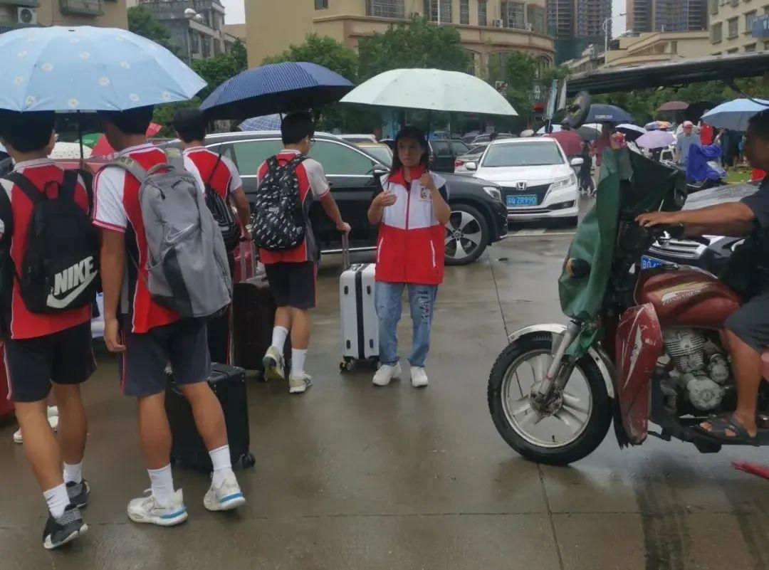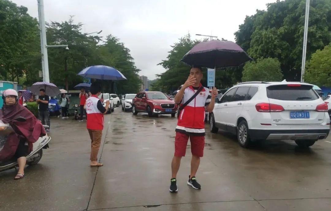 9月30日下午,天空飘扬着毛毛细雨,为确保学生国庆假期离校返家的交通安全,“家警校”的家长志愿者、交通警察、学校领导及老师迅速开展护安护畅活动。其中,身穿红色志愿服的新一届家委会志愿者们成了一道亮丽的风景线。