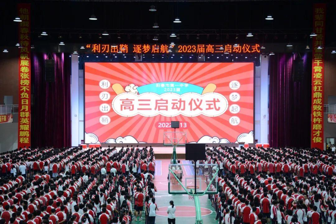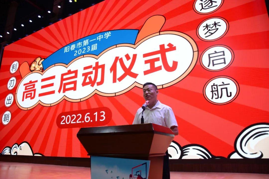 6月13日上午8:00,阳春一中“利刃出鞘,逐梦启航”2023届高三启动仪式拉开帷幕。阳春市教育局局长黄培,阳春一中校长谭元军,副校长黄显连,全体高二级教师、学生及部分家长代表共同参加了此次活动。