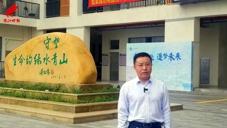 南海中学校长傅陆根接受记者采访。