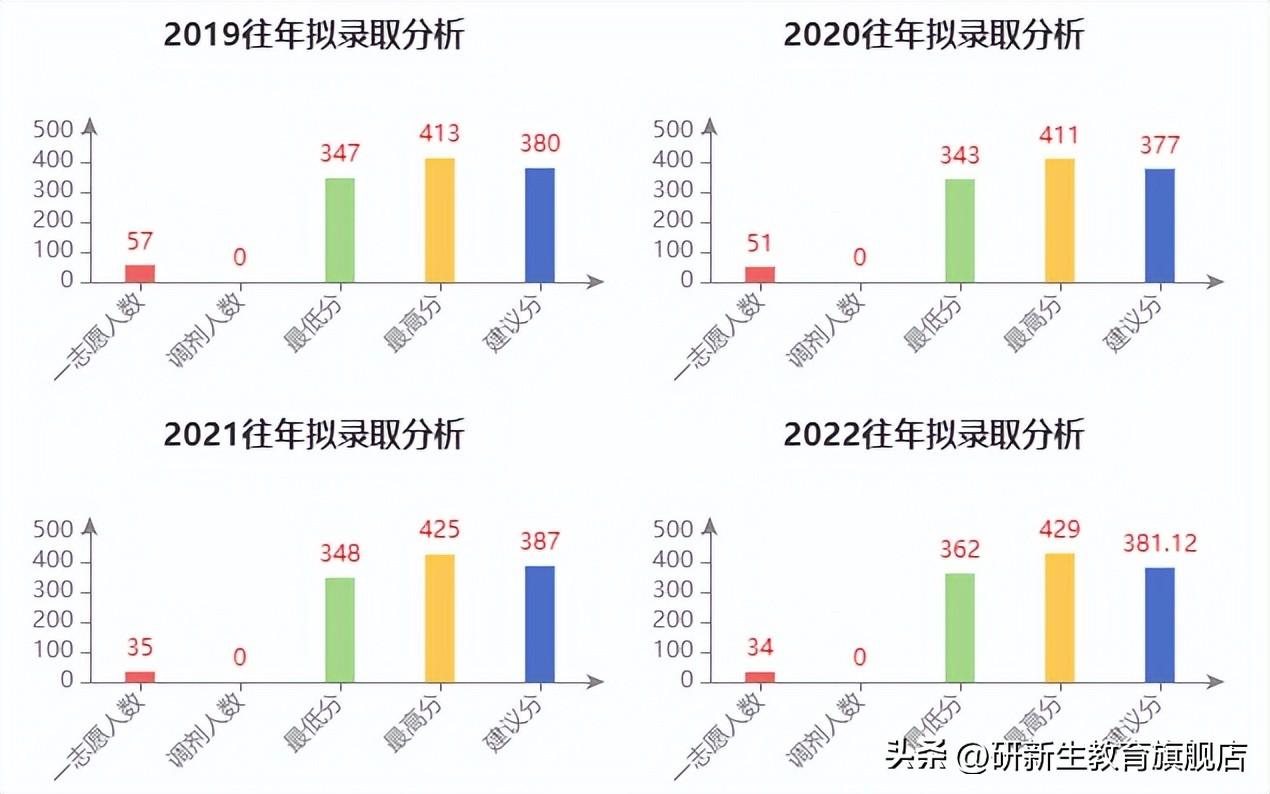 包含招生人数、参考书目、复试分数线、拟录取最高/低分数线、往年拟录取情况、初试备考经验等。