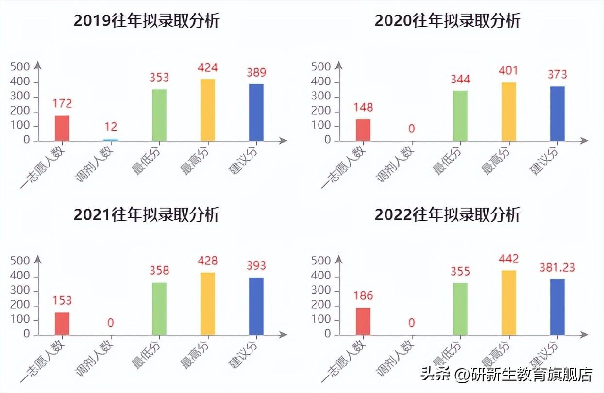 2022年复试线为362分,一志愿进入复试187人,最高分为442,平均分为385,复录比:1.22。