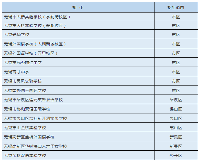 招生范围:梁溪区、锡山区、惠山区、滨湖区、新吴区、经开区