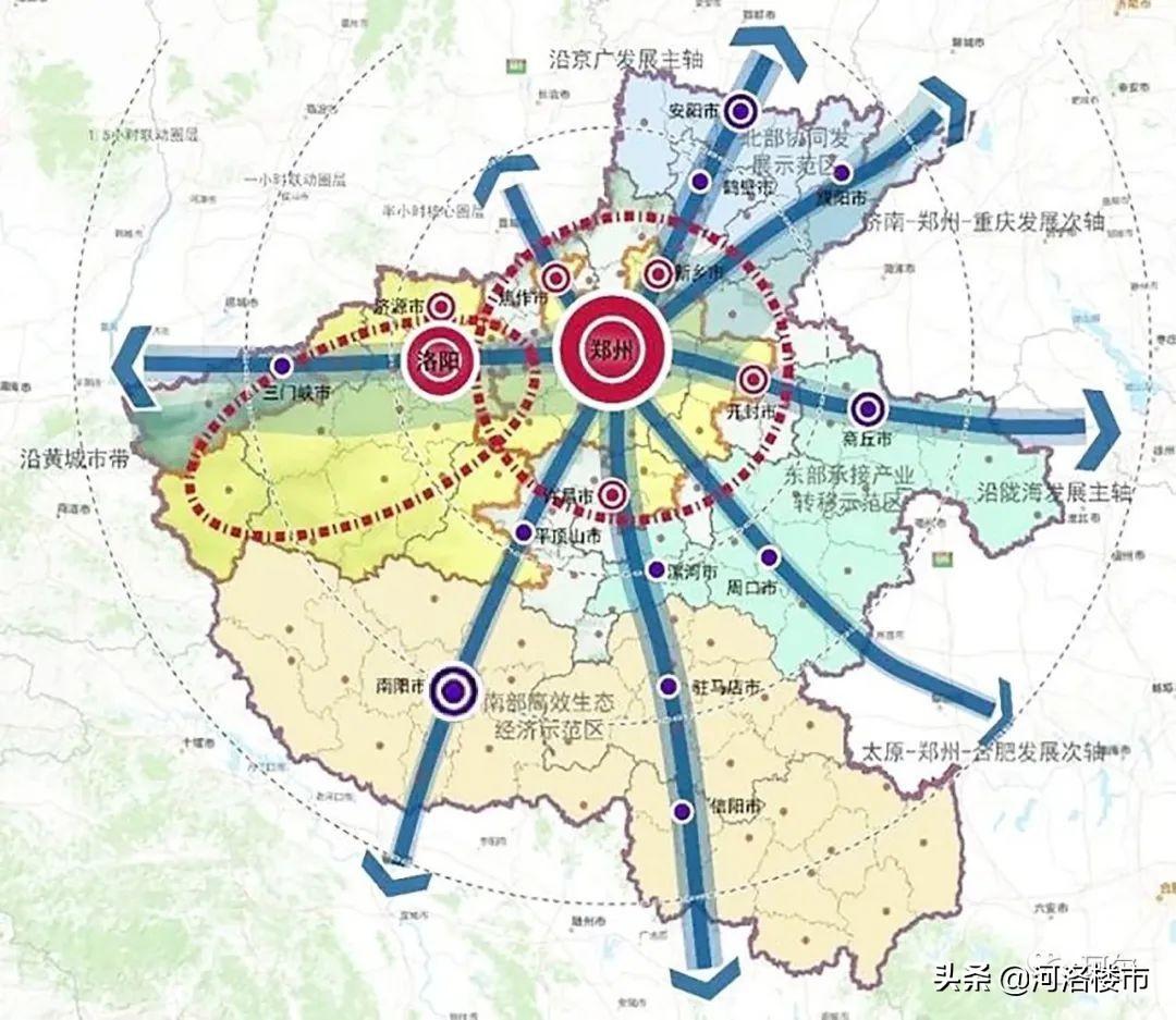 今天先放一张过程稿,方便大家对河南省域空间战略格局有一个初步概念,根据规划,河南将谋划主副引领两圈带动三区协同的发展空间格局,黄色区域的豫西都市圈就是洛阳当年的都市圈!