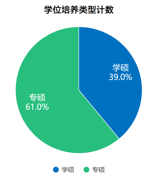 2022届中国医科大学各招生单位统招共录取2224 人(不含推免),其中学硕876人,专硕1348人。含非全日制1人、定向培养28人。推免264人,推免率为11%。专硕和学硕的招生占比如下图: