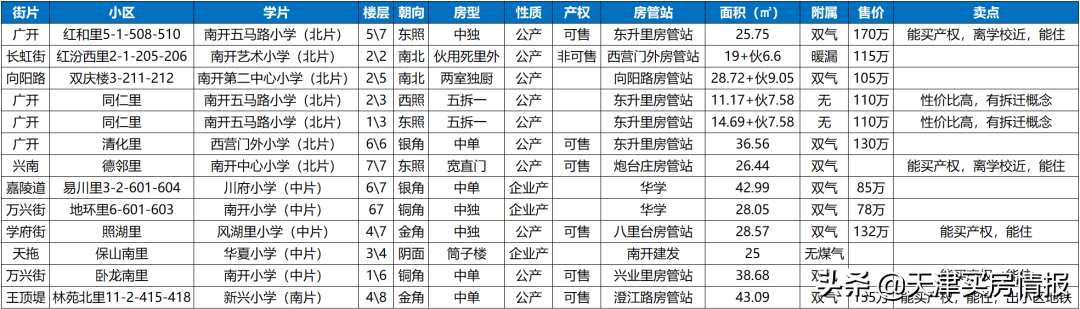 南开区重点学区房源信息(来源:津房置换)