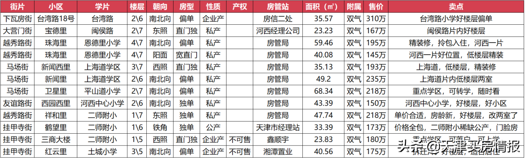 河西区重点学区房源信息(来源:津房置换)