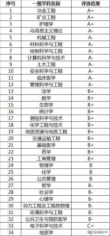 中南大学给人的印象是矿冶学科、医学学科、土木学科实力非常强大,但其实中南大学在其他学科上进步很快。在反应学科实力的第四轮学科评估中,中南大学有40个一级学科参评。A类学科12个,其中,A+学科3个,分别是冶金工程、矿业工程、护理学,A-学科9个,分别是马克思主义理论、机械工程、材料科学与工程、控制科学与工程、计算机科学与技术、土木工程、安全科学与工程、临床医学、管理科学与工程。A类学科数量居全国并列第19位(其中工学工学A类学科数量8个居第11位),A类优秀率为26%,居全国参评高校并列第21位。