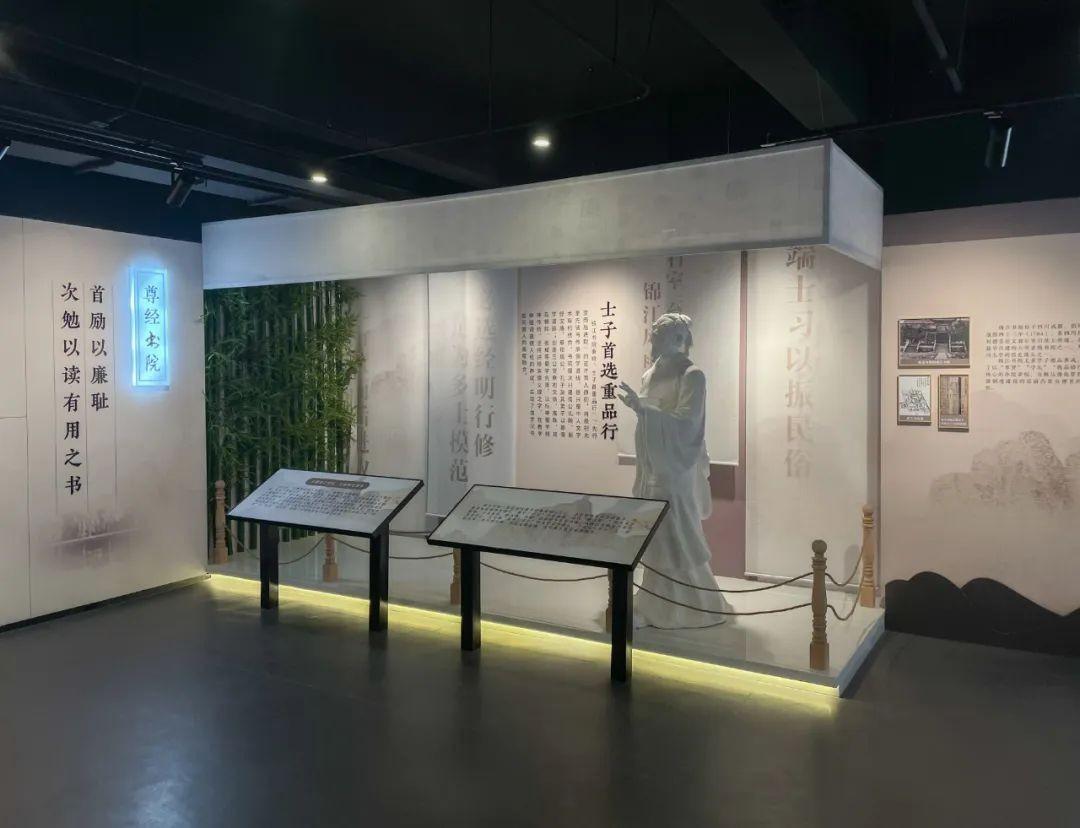 此展厅运用音画结合的艺术装置,让古籍中的廉洁词句“活”起来。通过阐释古代中外文明对“廉洁”内涵的释义,回溯中国廉洁文化史脉与教育的紧密联系,展示廉洁文化在校训学规、教育家、教材、考试制度等方面的投射。