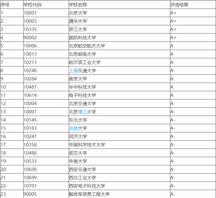 计算机专业教育部第四次学科评估A-及以上