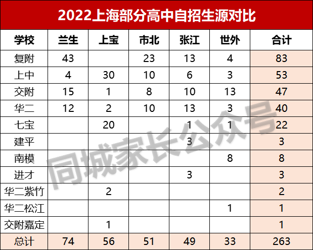 2022年,上海有85所高中参与自招,很多家长非常关注四校八大等名校的生源,我们一起来看看部分数据:
