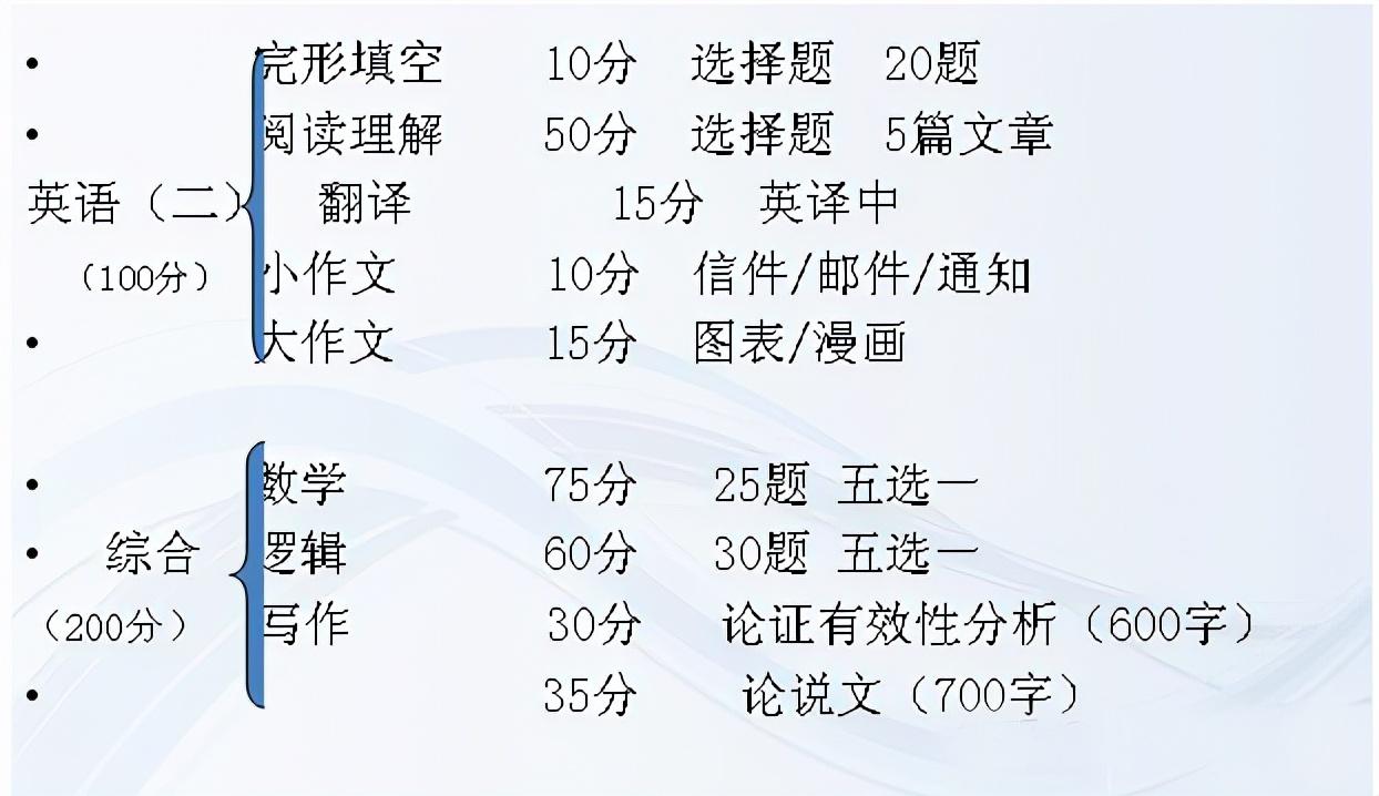 考试科目管理类综合(199)和英语二(204),外语可以选择小语种日语或者俄语。
