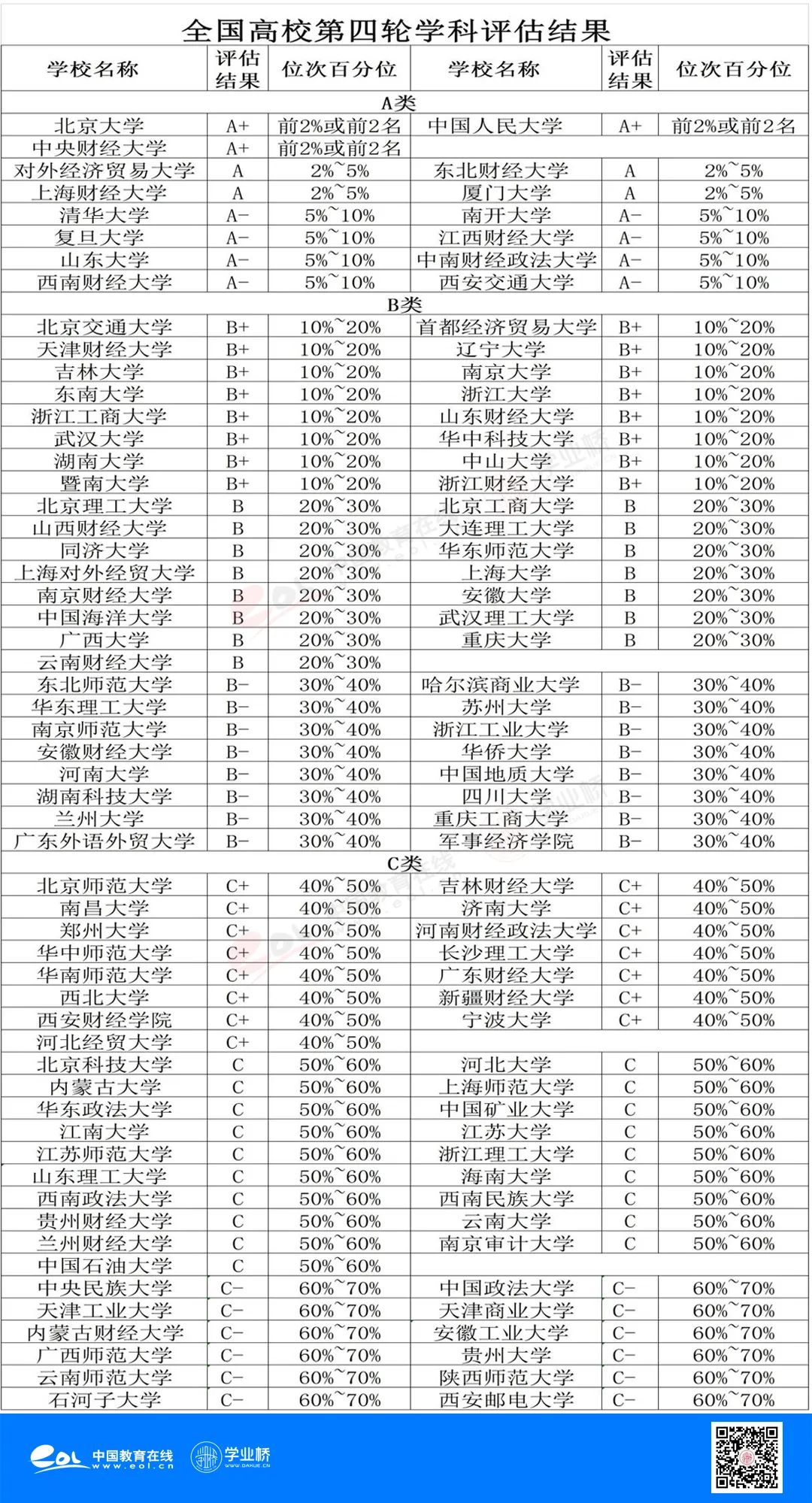 6、经济学4大专业门类的专业排名(第四轮学科评估)