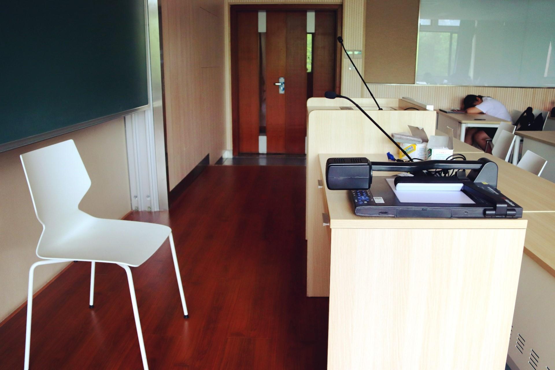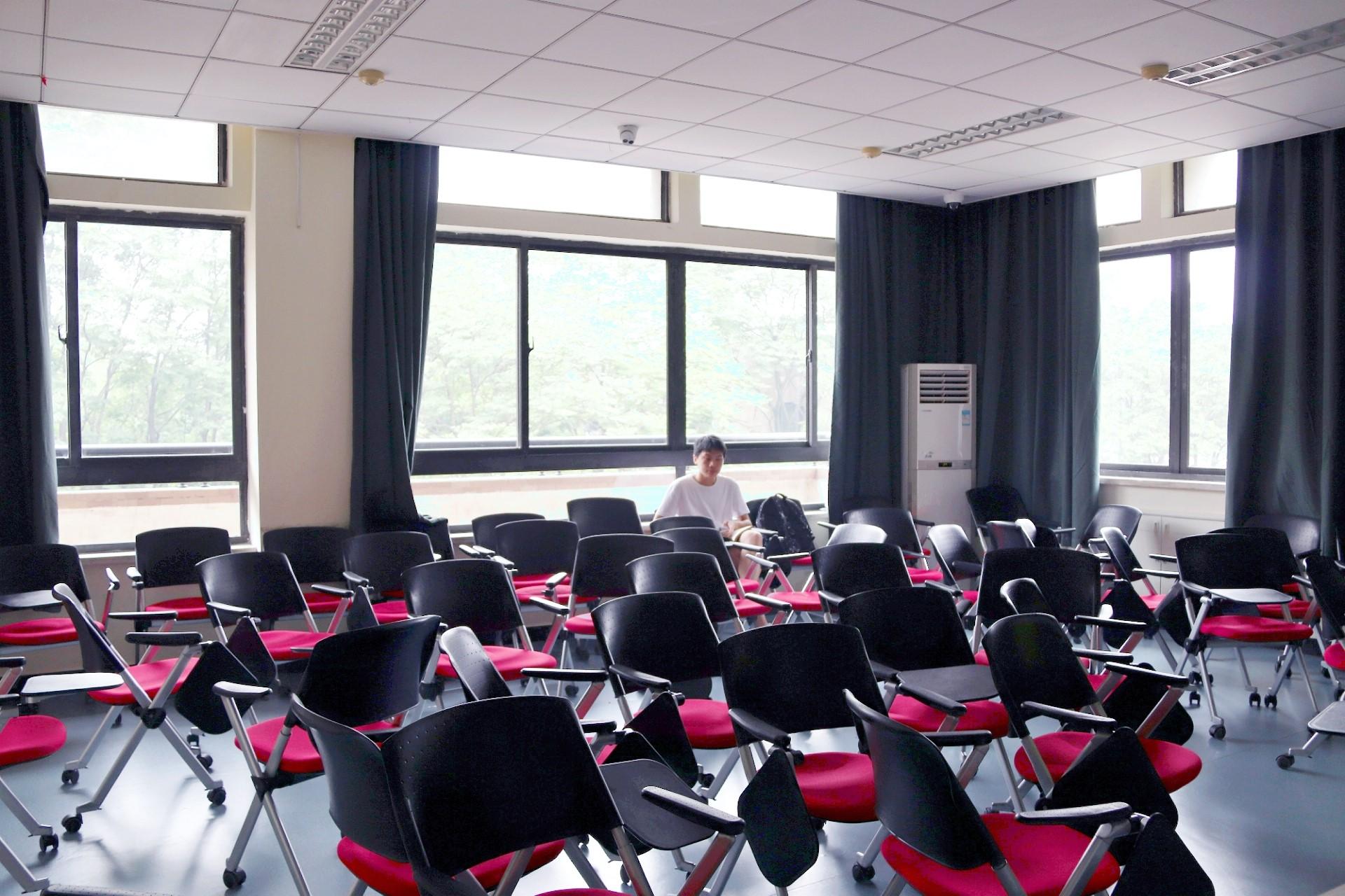 距离105教室不到200米的107教室此时正被浙江大学红十字会的学生们借用于毕业晚会的彩排。这间以高端报告厅标准搭建的教室在接下来的一周内几乎“档期全无”,上课时间外还被各大学生组织与社团借用。回字型的教室布局,配套台阶式的座位分布,保留了宽敞的空间,尤其适用于演讲、答辩、辩论、模拟法庭等模式的授课与学生活动,使之成为了炙手可热的公共空间。