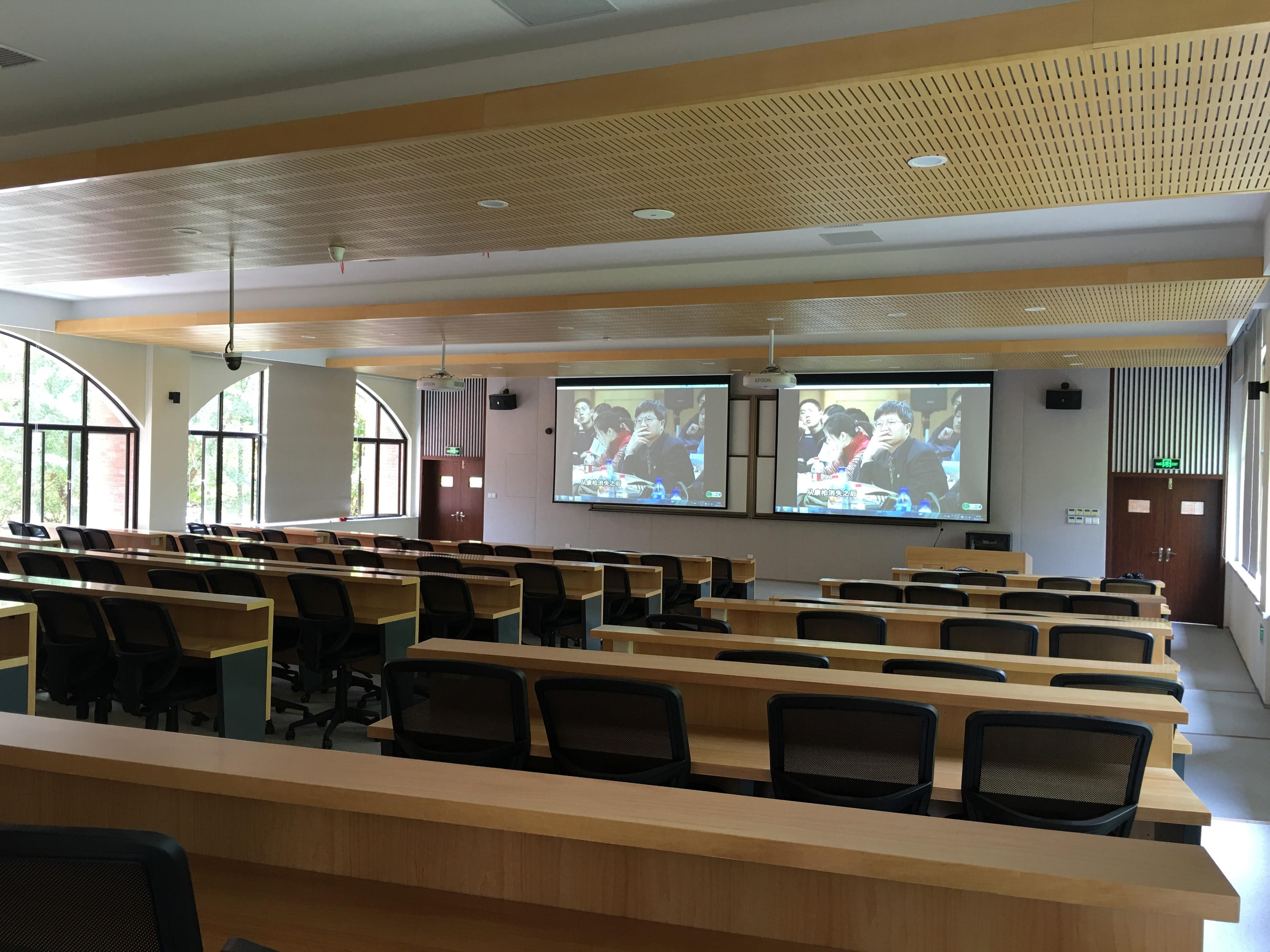 此外,这间远程互动教室还采用了特殊的墙体材料和墙面构造,配置了均匀分布的吸顶音箱,既美观又达到良好的扩音效果。老师在讲课时即使不使用话筒也能让坐在最后一排的同学听得一清二楚。