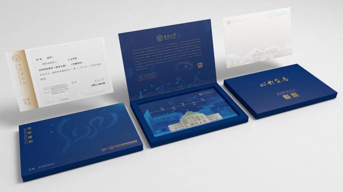 2022级本科录取通知书延续了“东大蓝”的传统,沉稳大气,充分展现了百年学府的厚重;