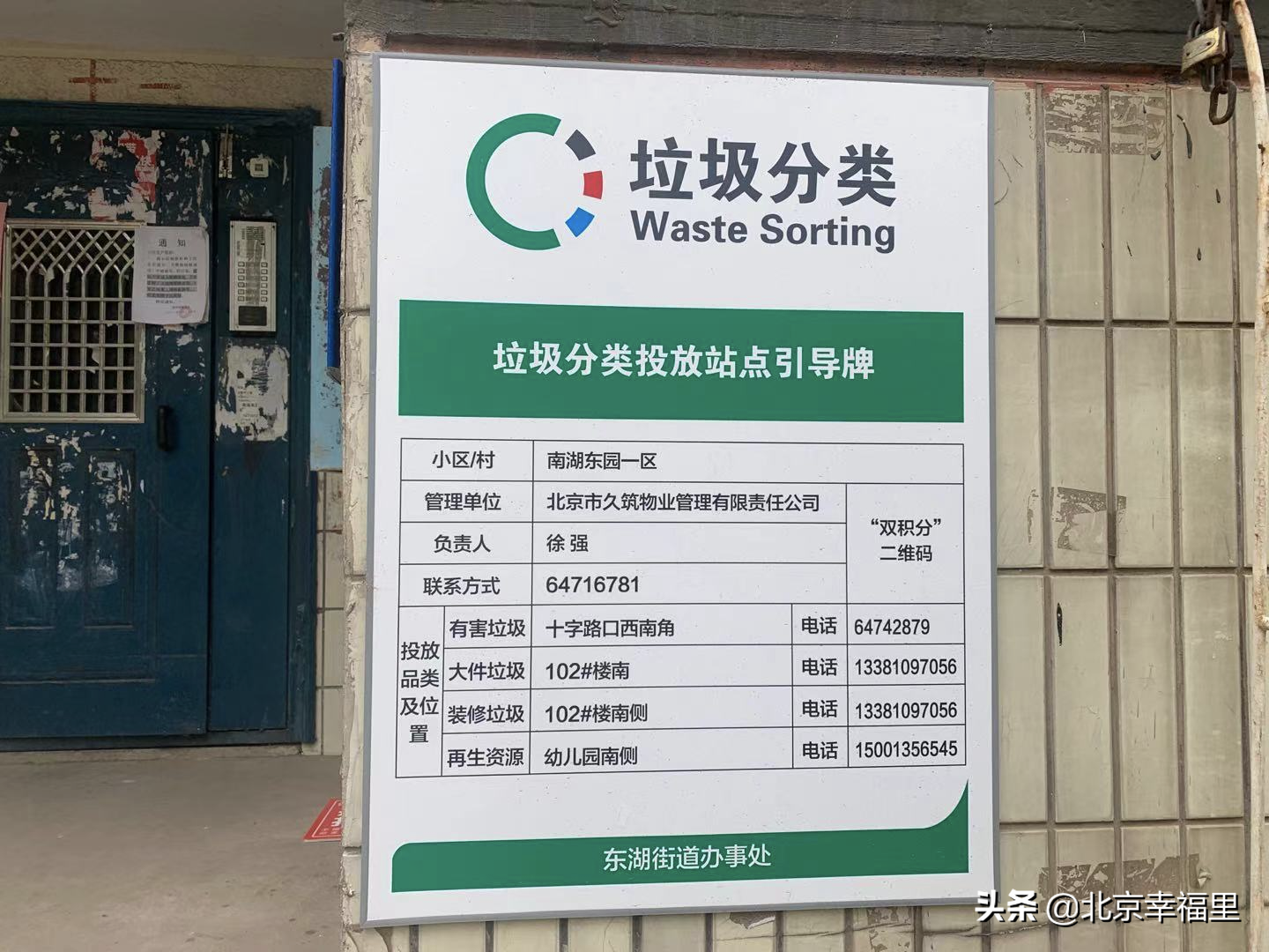 (小区内部分楼栋张贴垃圾站点引导牌)