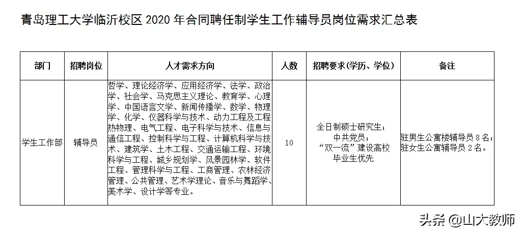 根据临沂校区实际工作需要,现决定面向社会公开招聘部分合同聘任制学生工作辅导员。