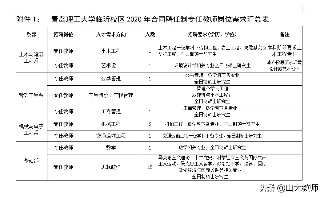 根据临沂校区实际工作需要,现决定面向社会公开招聘部分合同聘任制专任教师。