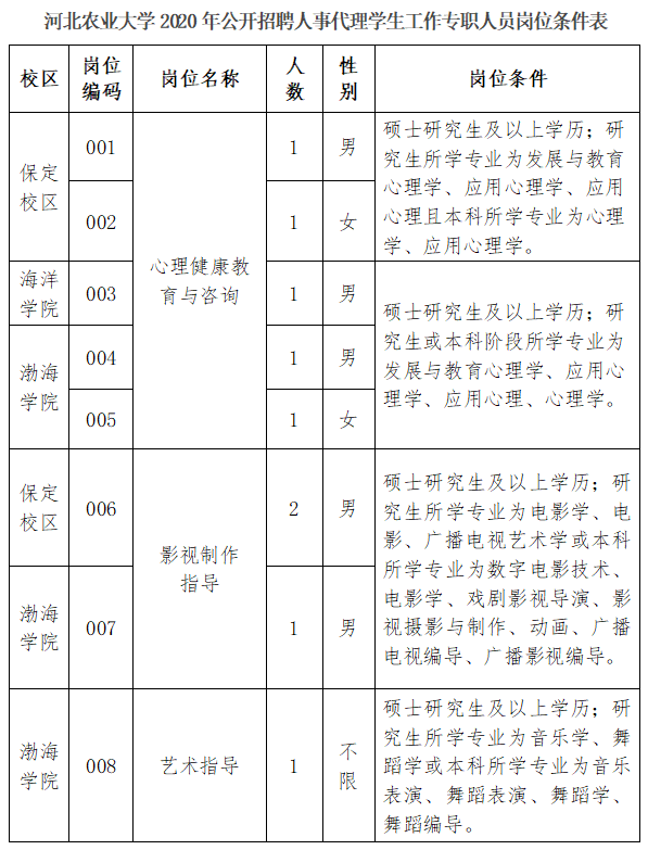 根据实际工作需要,河北农业大学2020年面向社会公开招聘人事代理学生工作专职人员17名。现将有关事项公告如下: