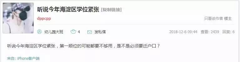 18年年底某论坛上这样一条帖子,海淀本区户籍孩子的家长竟也开始恐慌:“听说海淀区学位紧张,要不要迁户口?”
