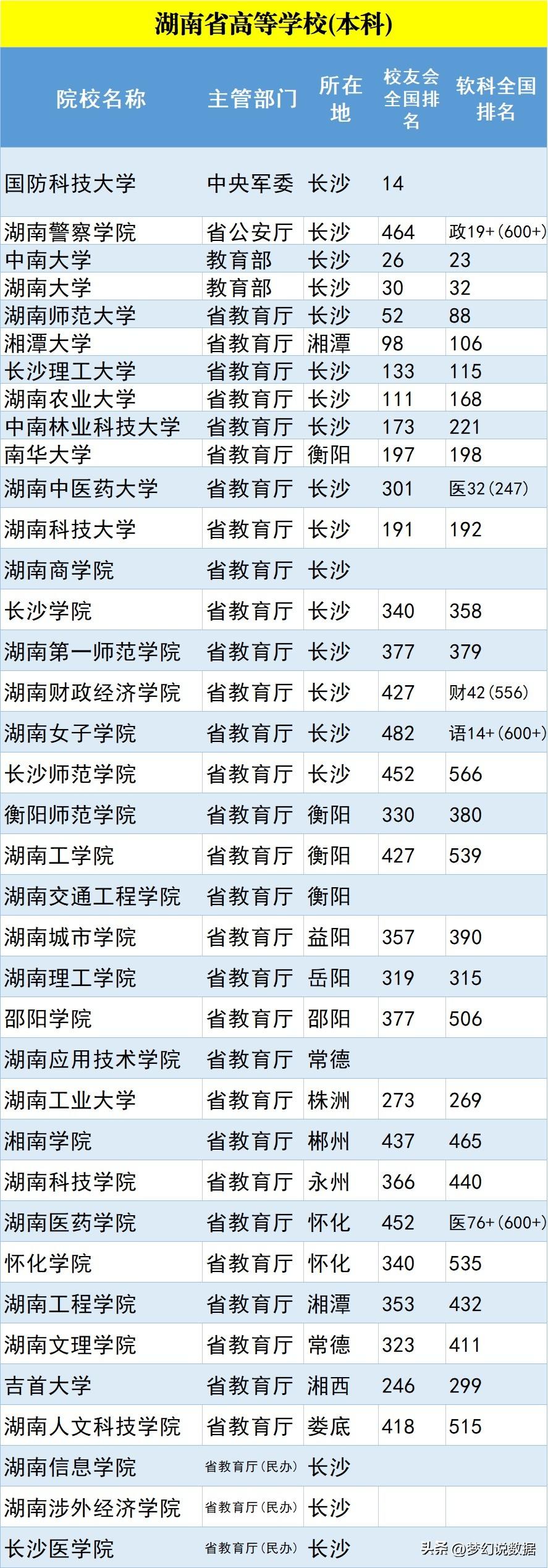 今天就分享湖南省内大学现状、排名、双一流学科建设、经费预算、学术影响力、富豪榜等情况,以期为考生高考或深造提供依据。欢迎收藏转发。