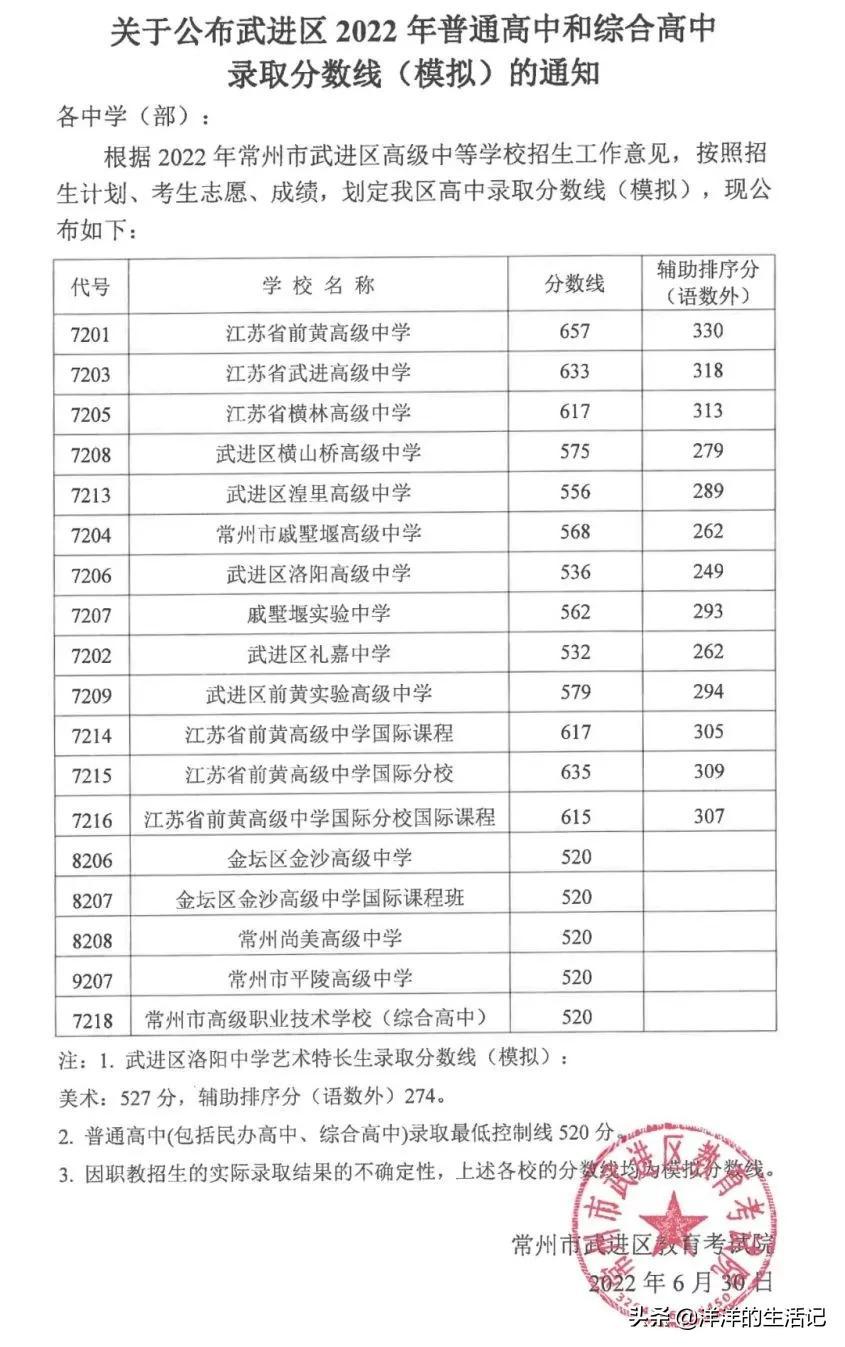 2022年江苏省常州市普通高中 录取分数线出炉!