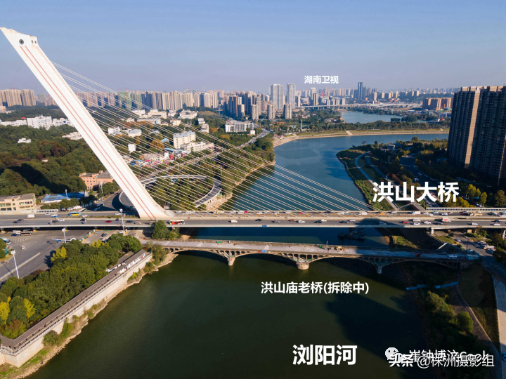 32.在浏阳河上存在了50年的洪山庙老桥,就要走进长沙城市历史了。这座双曲拱桥,在旁边的新桥2005年建好后,本来是做行人桥使用的,但后来因为浏阳河航道通行船只船型变大,桥体多次被船只撞击,受损严重,变成了危桥,出于航道安全考虑,最终只能选择对这座老桥进行爆破拆除。