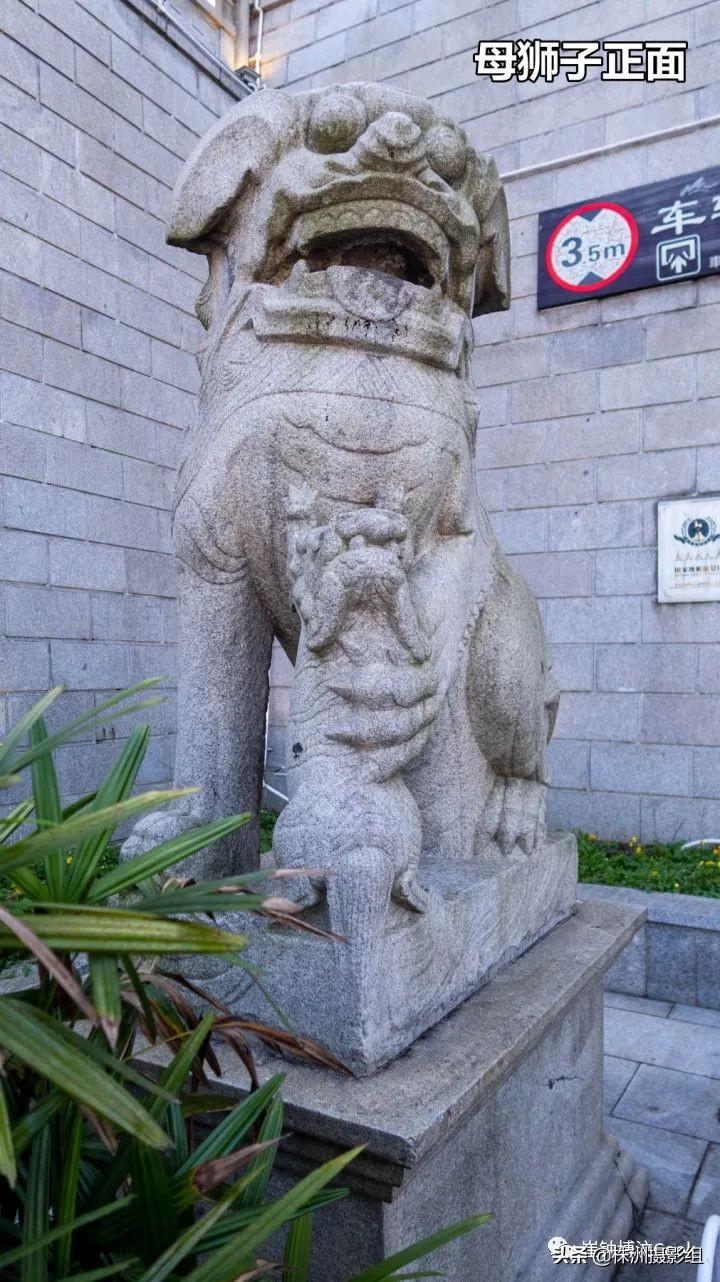 狮子带基座高3米,公狮子在玩球,母狮子在玩崽,这对石狮子原本在湖南贡院的辕门门口,湖南贡院你可以简单理解为清代湖南高考的场所,湖南贡院正门就在现在中山路老三角花园里面,所以这一对石狮子在三角花园待到了1998。