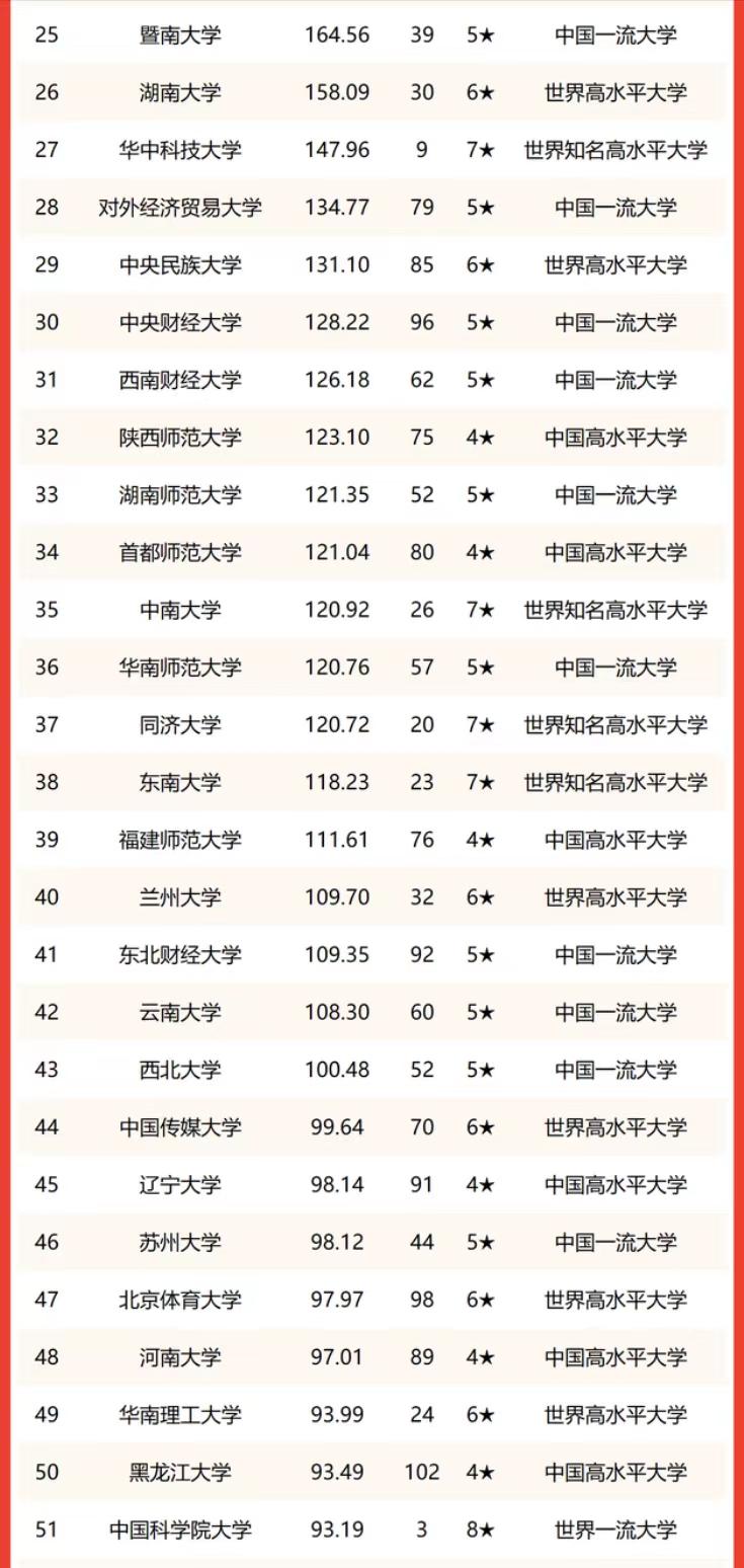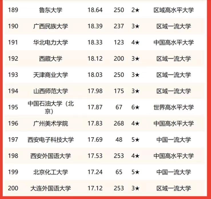 中国大学文科实力排名200强