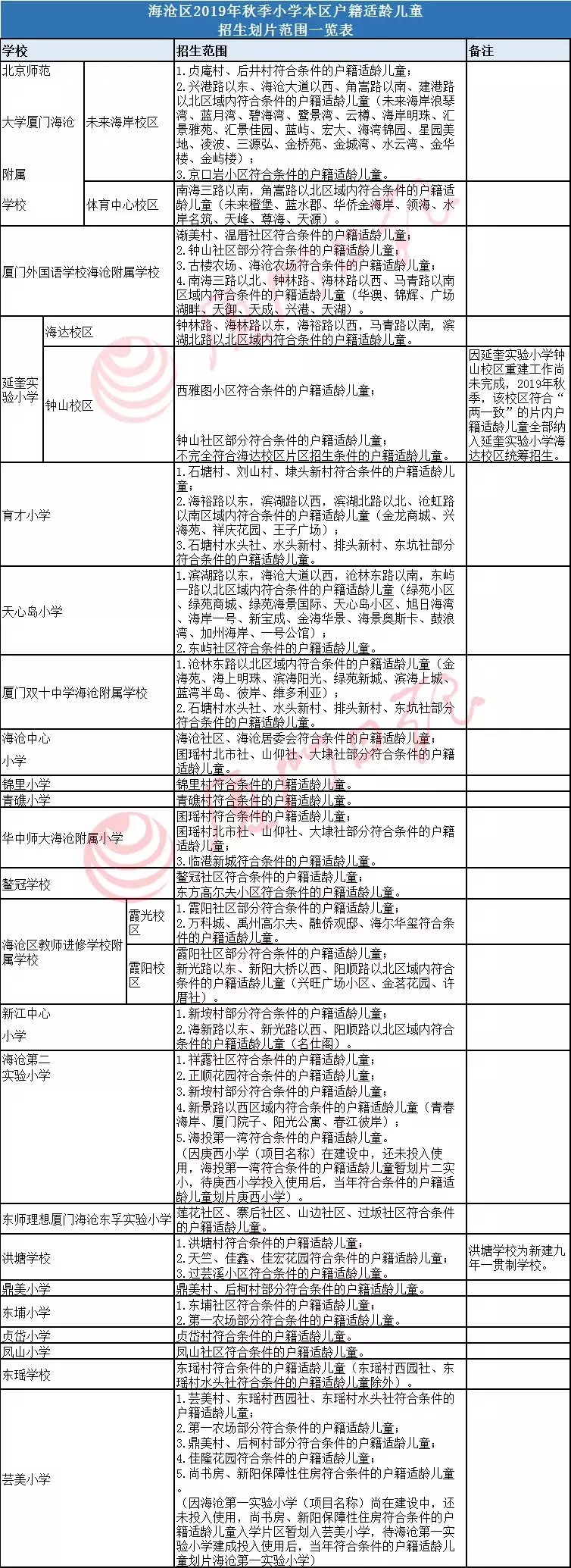 备注:6月10日-7月8日期间户籍新迁入海沧区的适龄儿童可于7月7日-8日至现场报名点进行网络补报名。